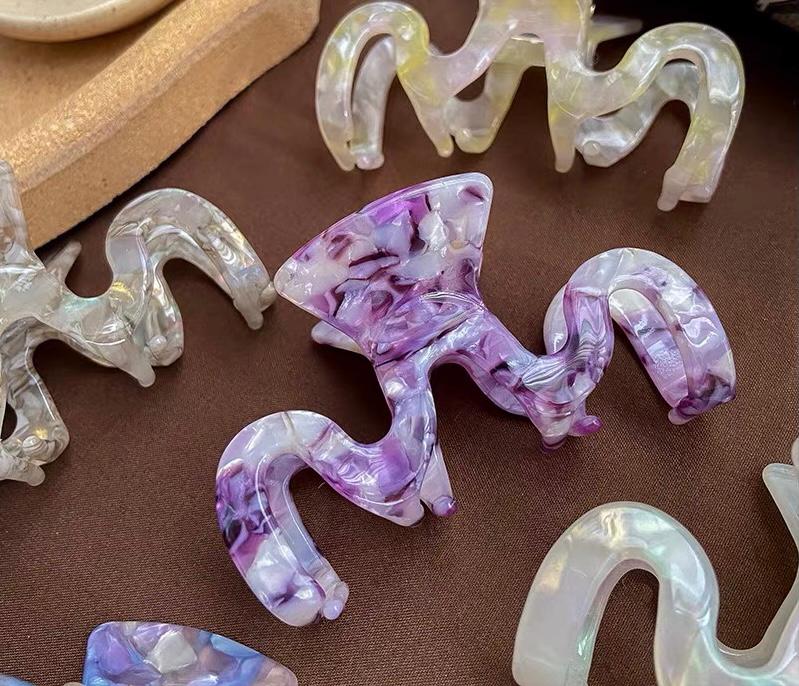 The Amethyst Squiggle Hair Claw is made of 100% acetate and measures 9cm across.