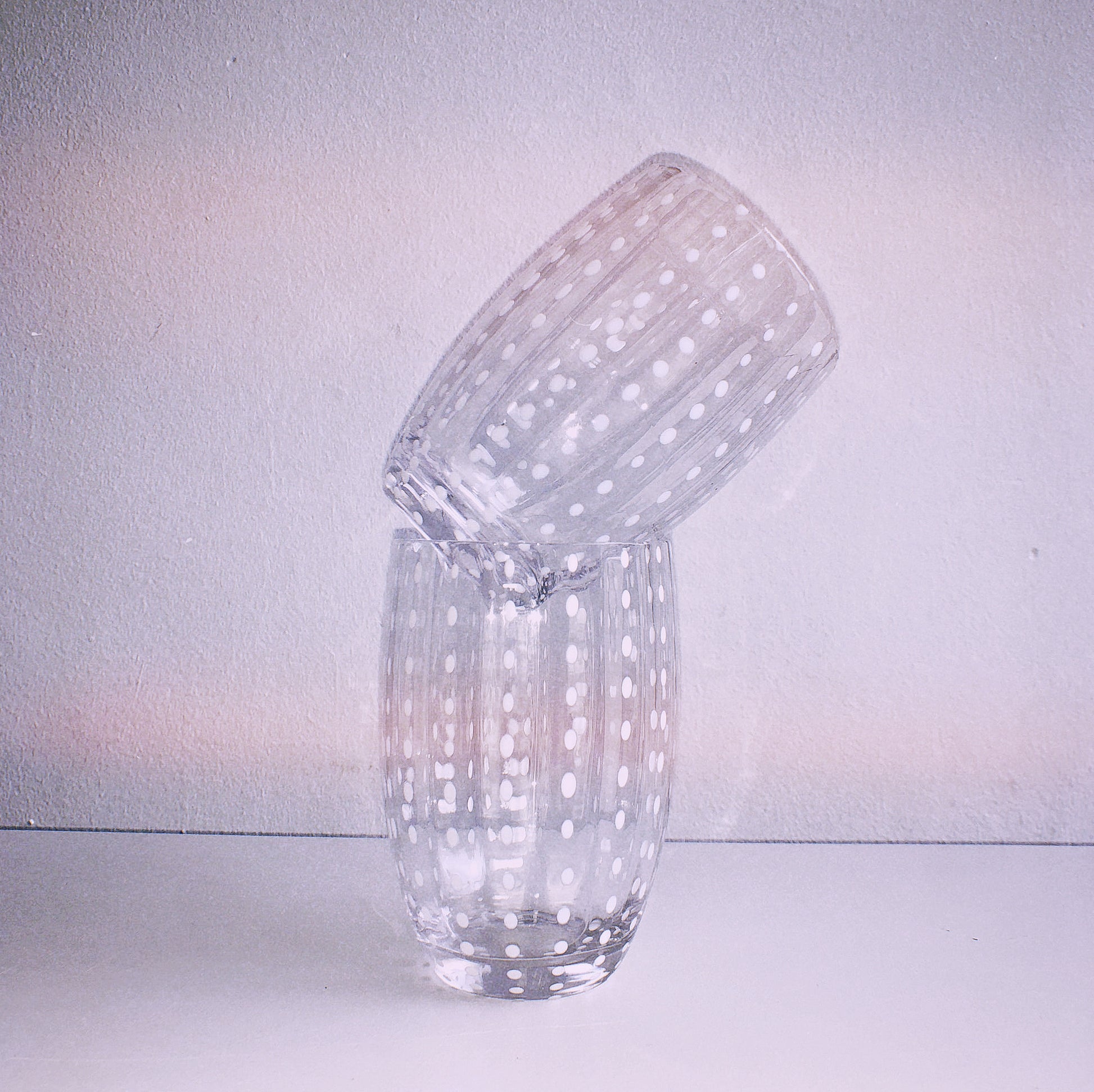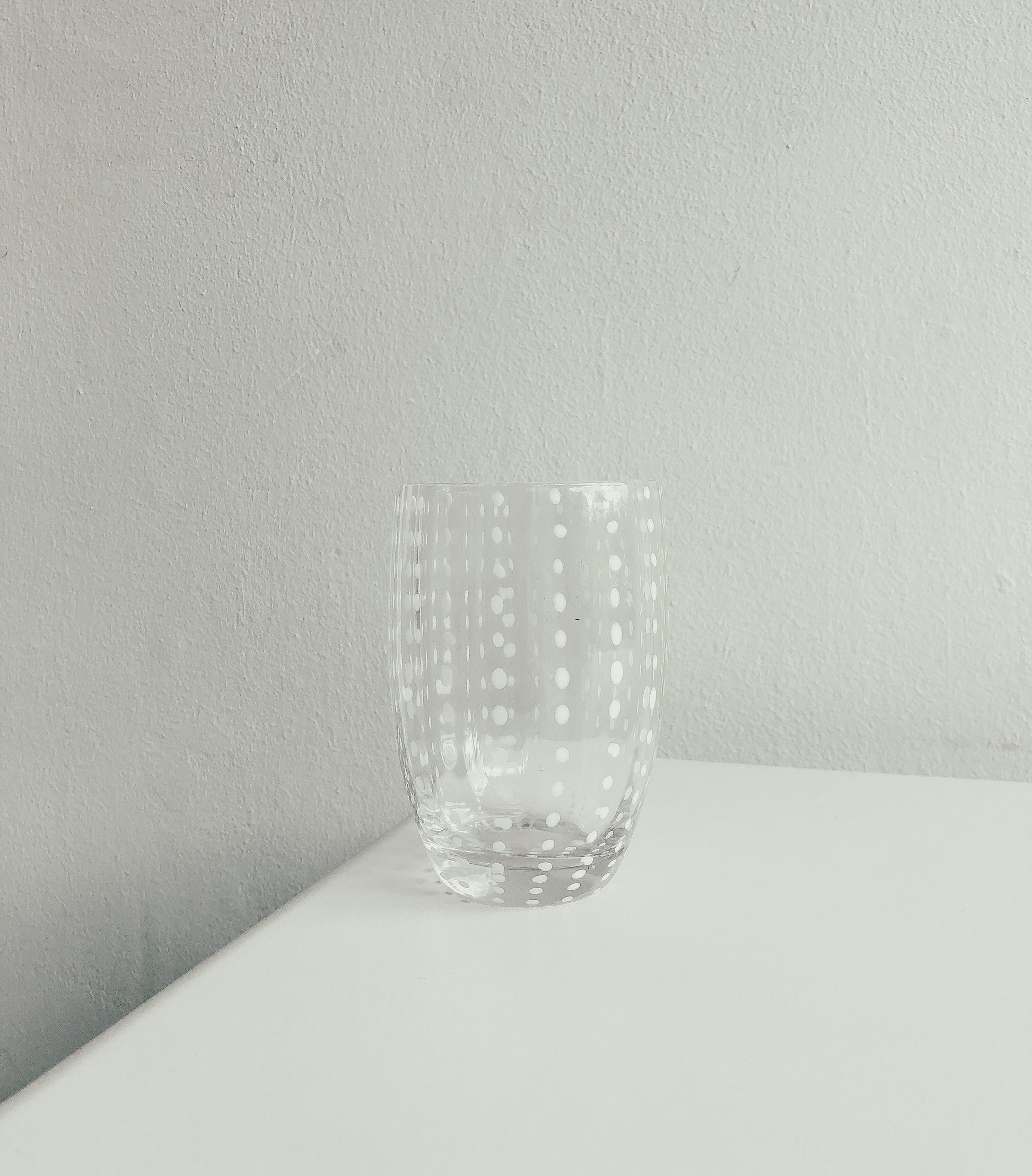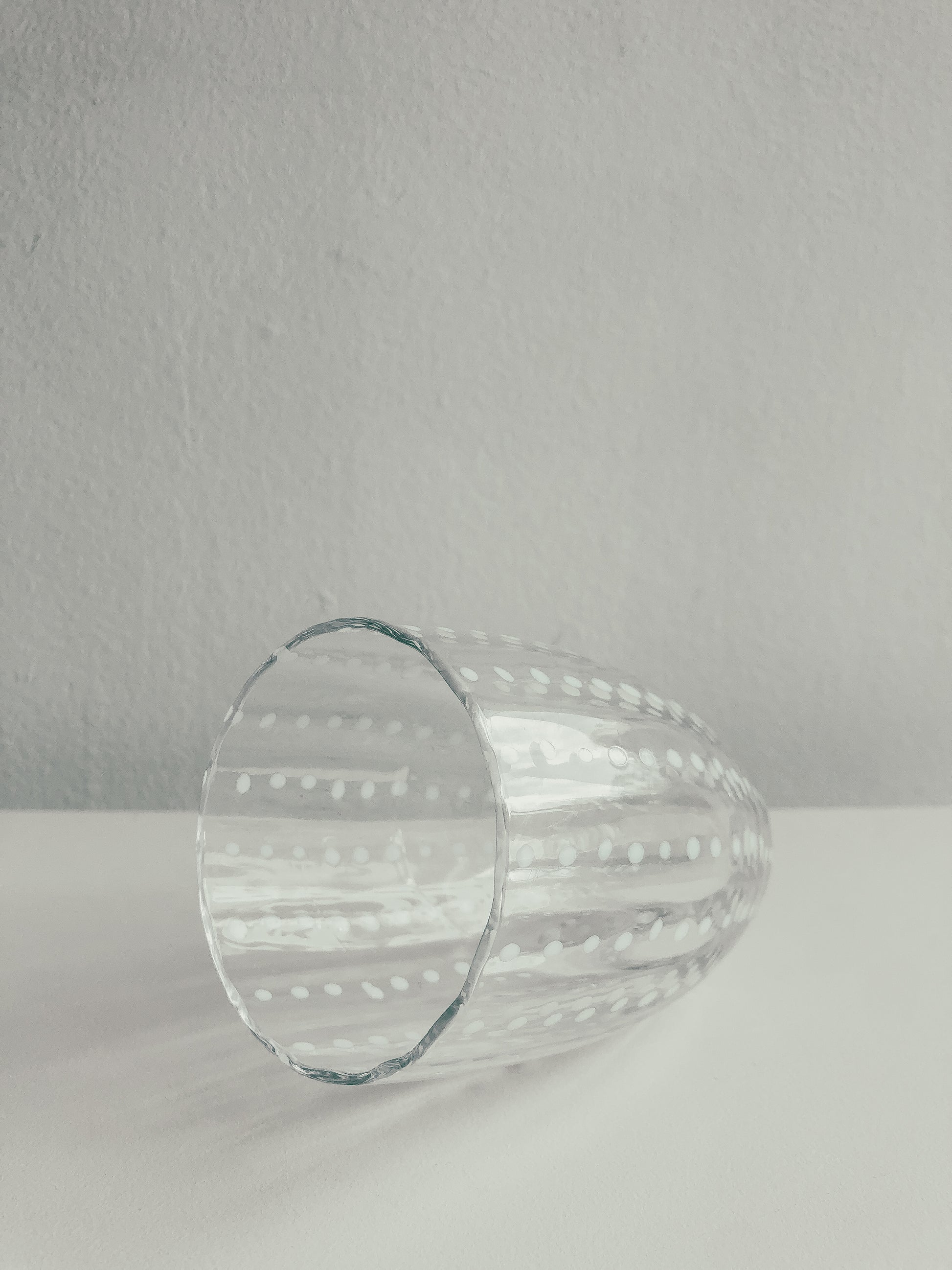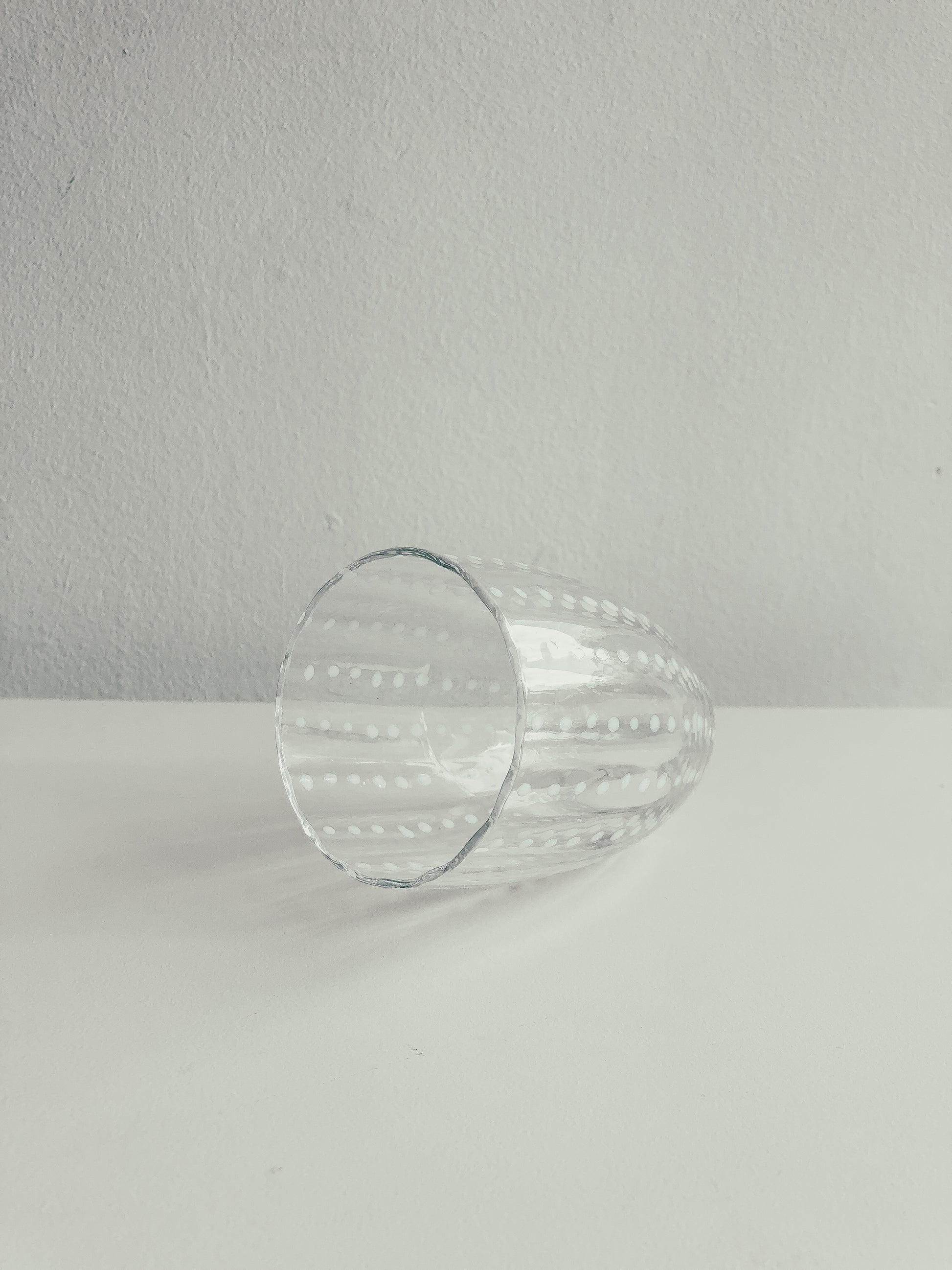A beautifully handcrafted series of Mexican Glassware with white speckled dots. Available in several stained glass variations: Clear, Dark Green (Empoli), Light Green (Lime), and a bright orangey red (Chilli) individually or as a set of 2.