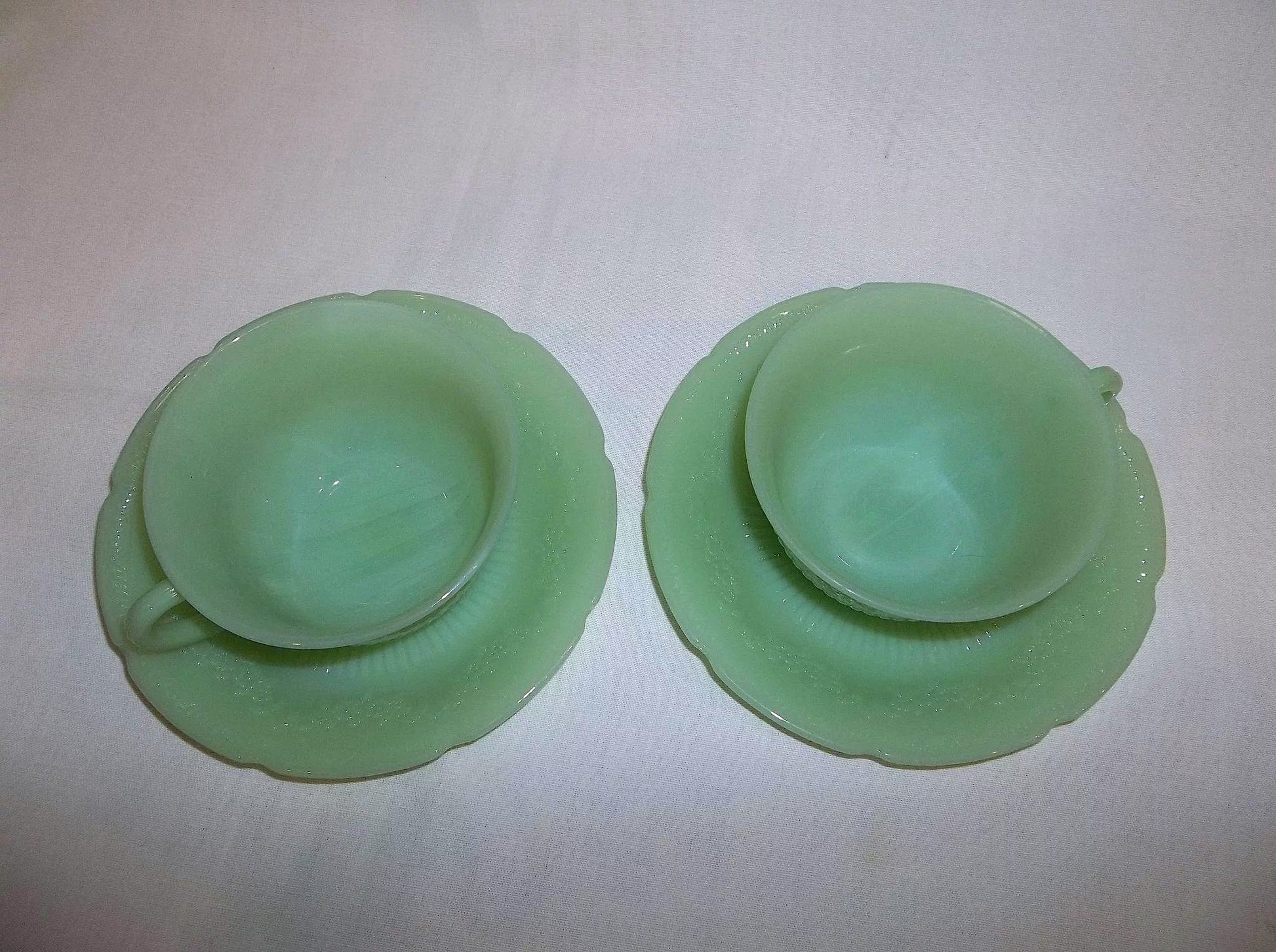 These pieces are very collectible and would be great additions to your jadeite serving collection.