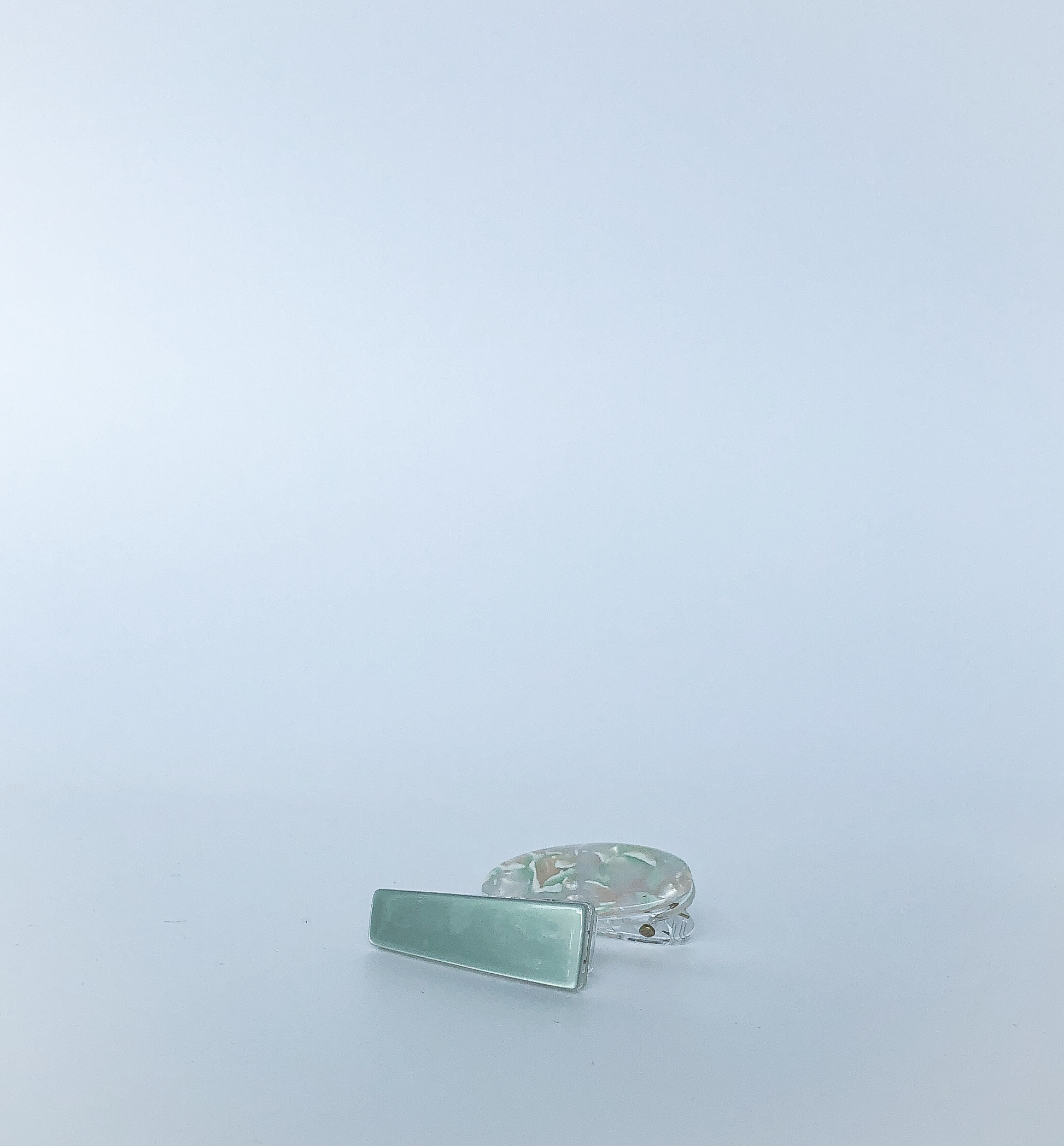 Vintage Hair Stones that give an understated accent to any hairdo. Emulating our favourite precious stones, colourways available in Jade (Rectangular), Prasiolite (Oval), Red Jasper (Rectangular) and Yellow Jasper (Oval).