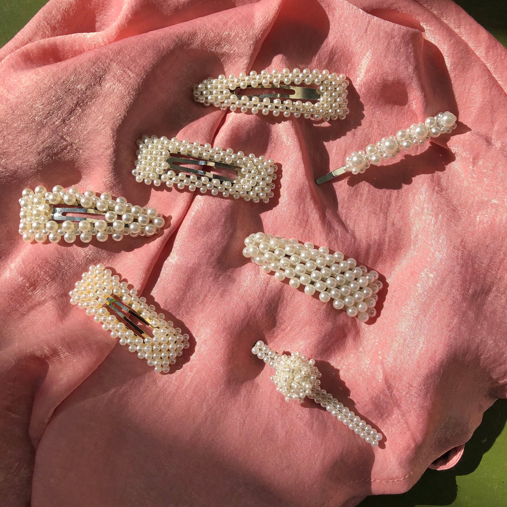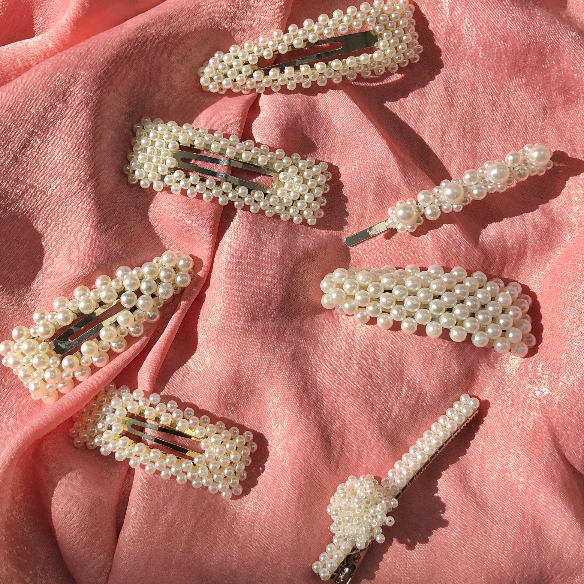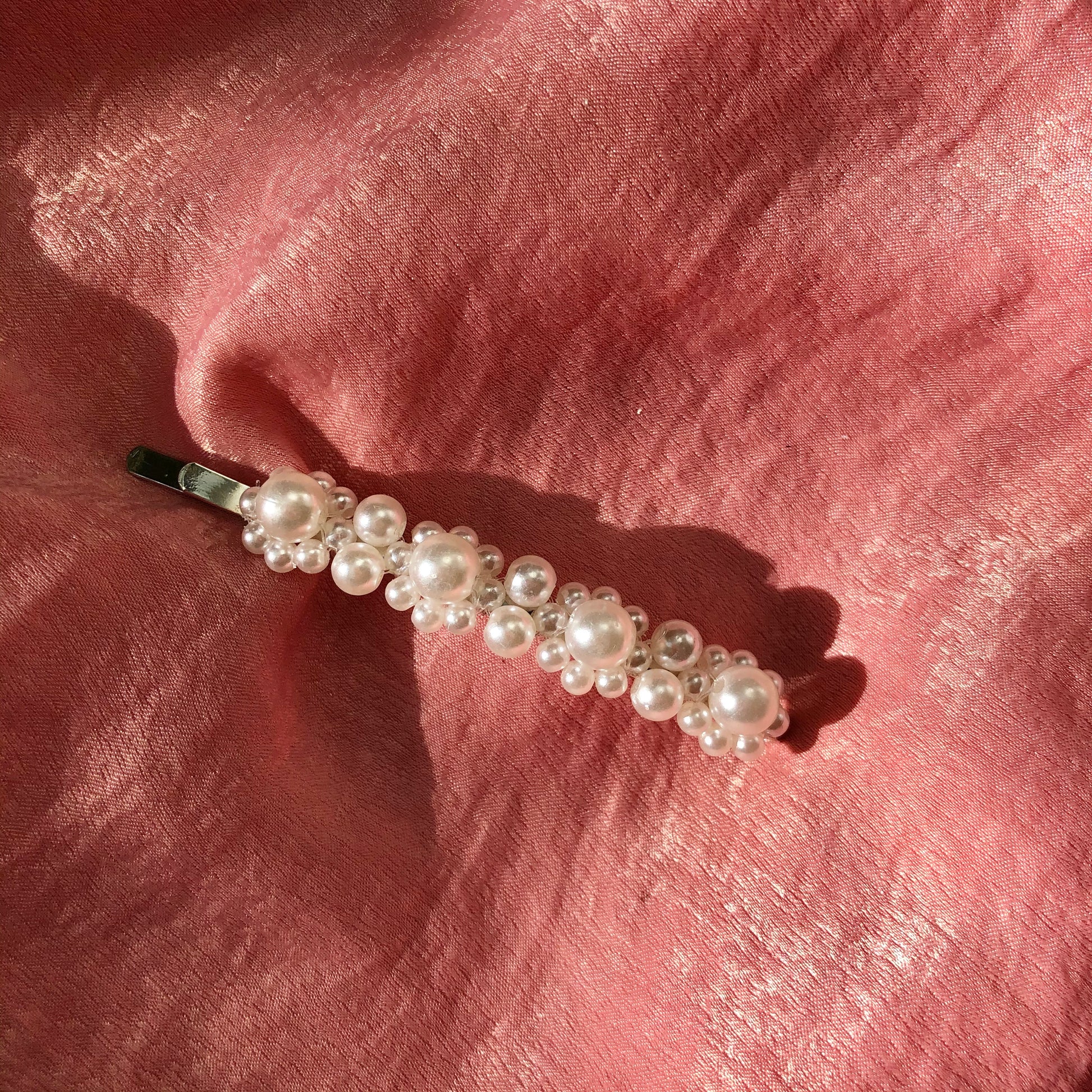 - The Statement Hair Clip comes fully beaded in mini pearls with a cute bauble and crocodile clip backing
