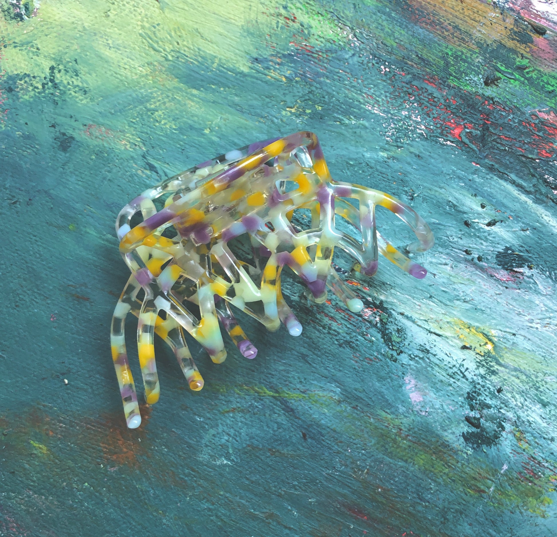 Styles available: Clear resin Hair Barrettes and Hair Claws speckled with dots of paint.