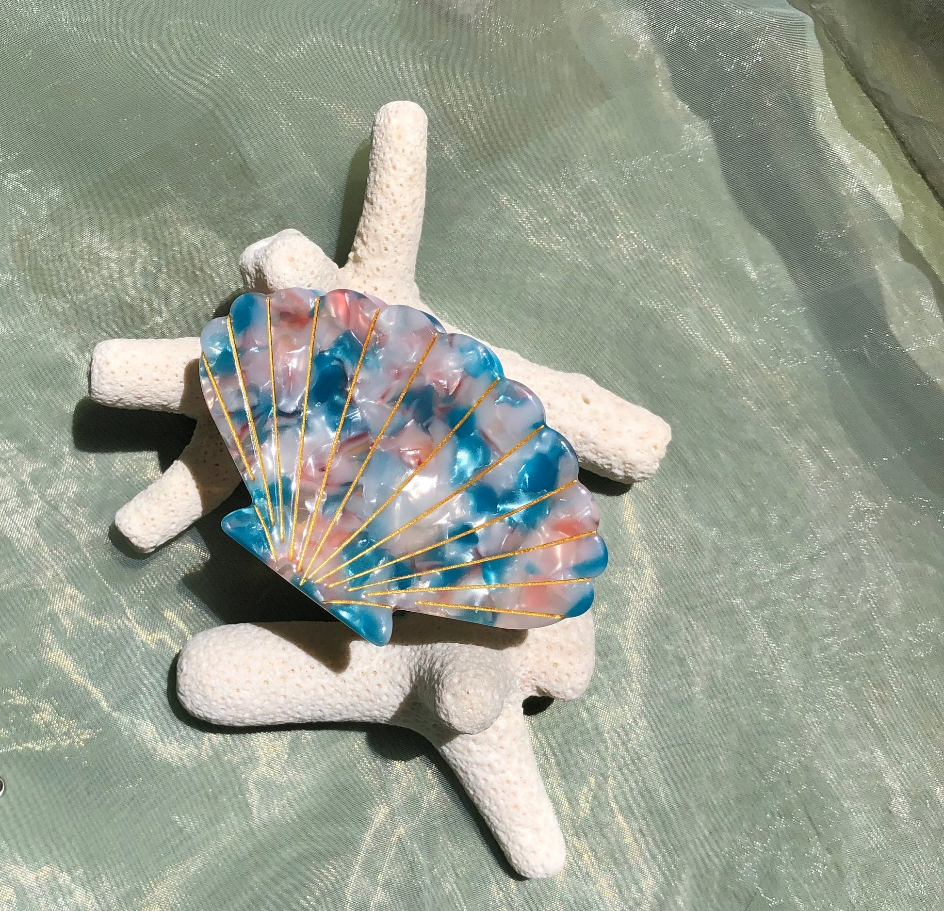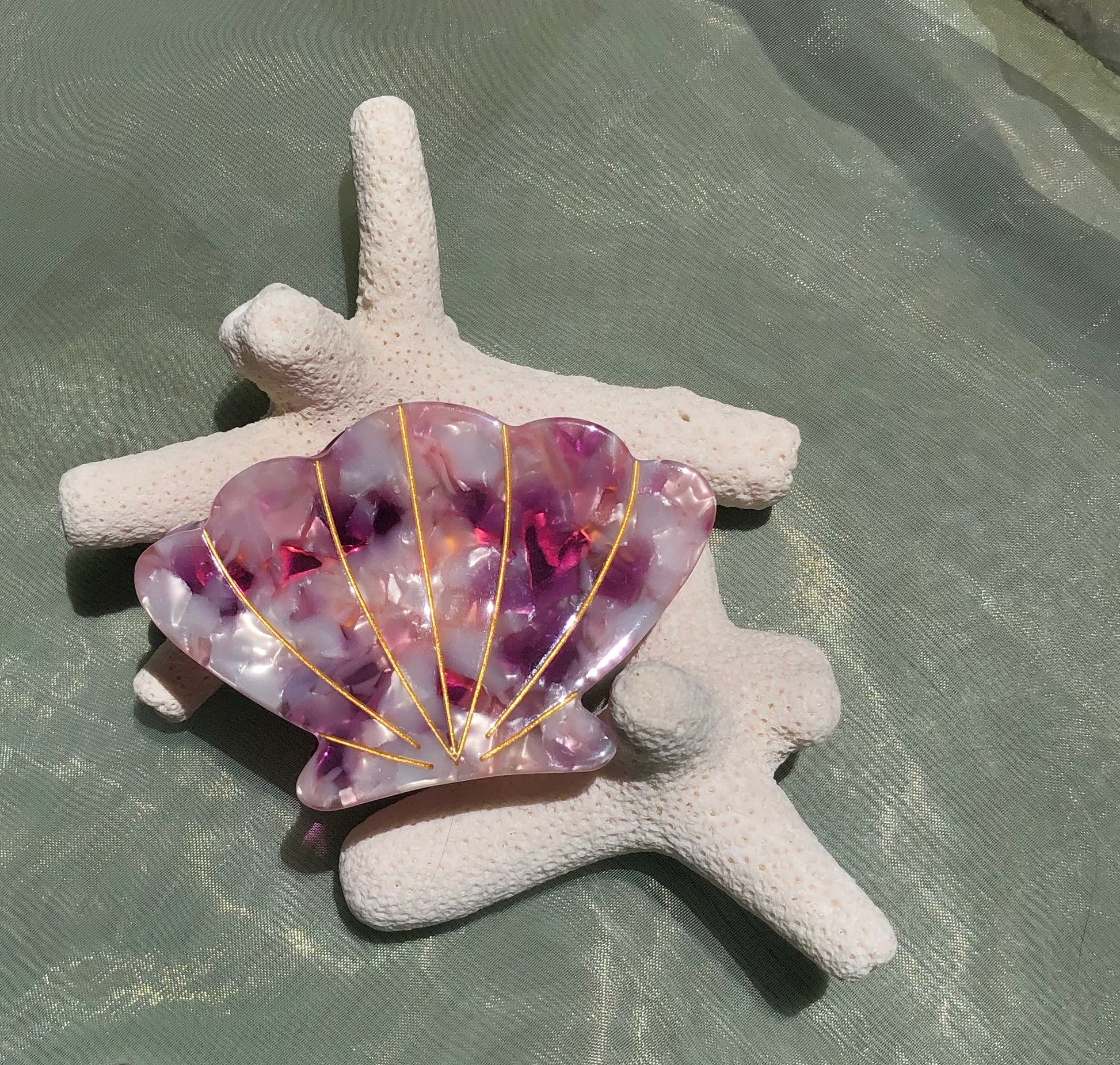 - Acetate scallop shells with gold claw backing