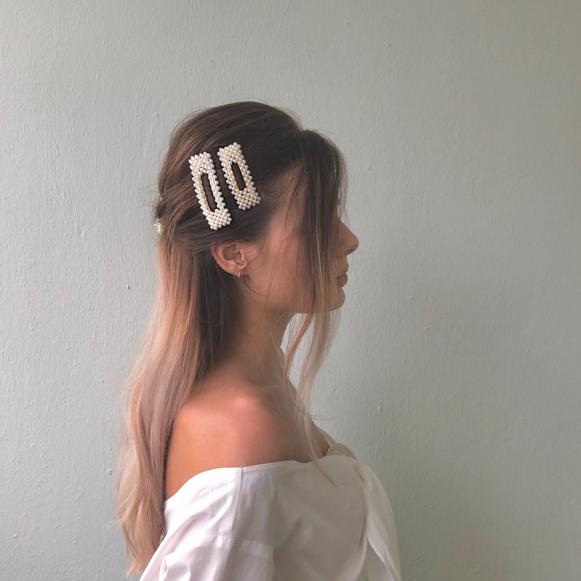 Handsewn Pearl Hair Barrettes