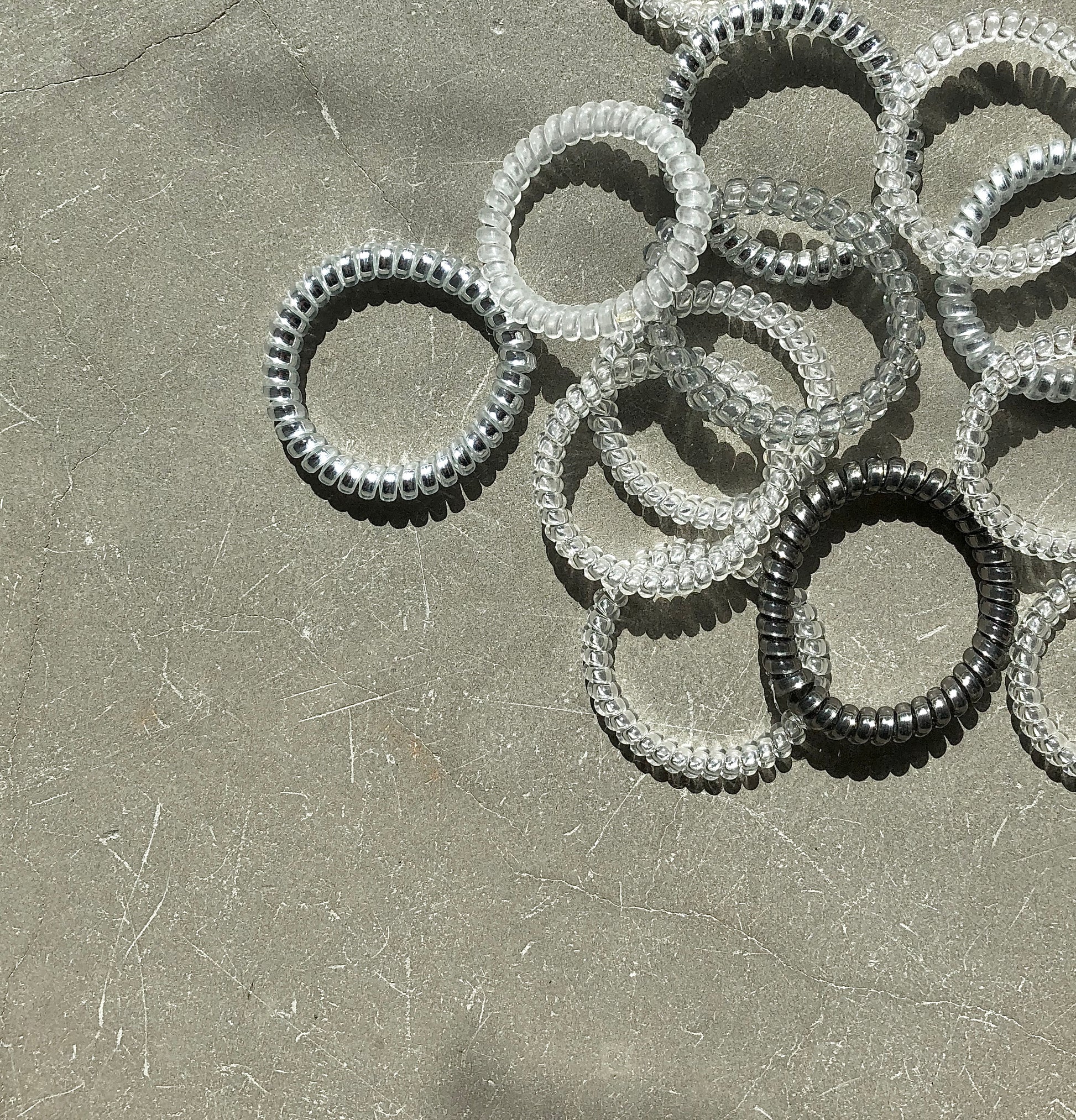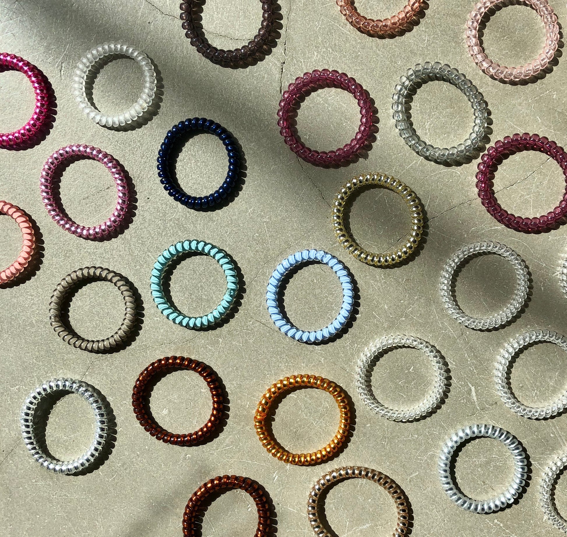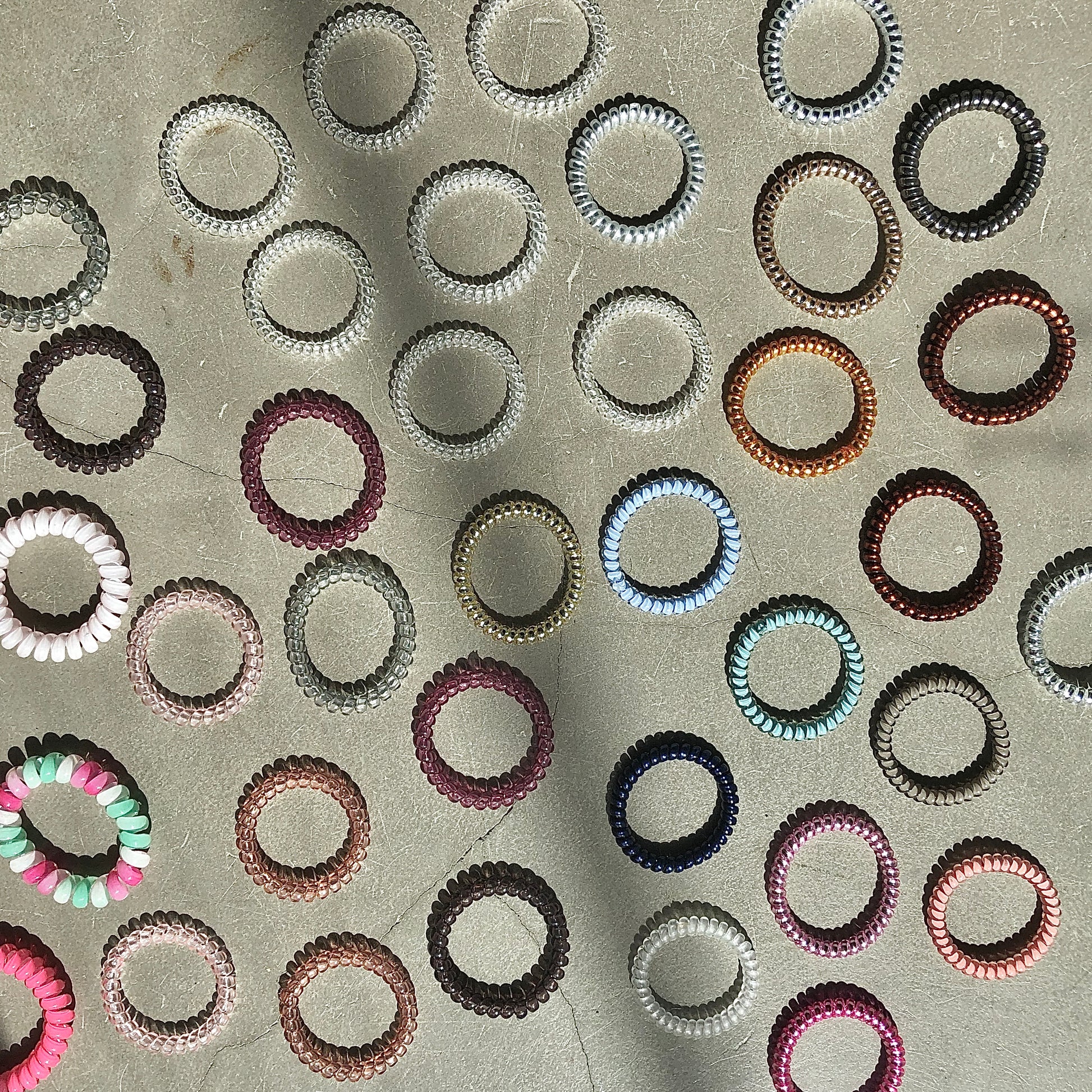 These plastic spiral hair ties come in clear, black and an assortment of bright colours are completely snag-free, which means no kinks, no breakage and no hair damage.
